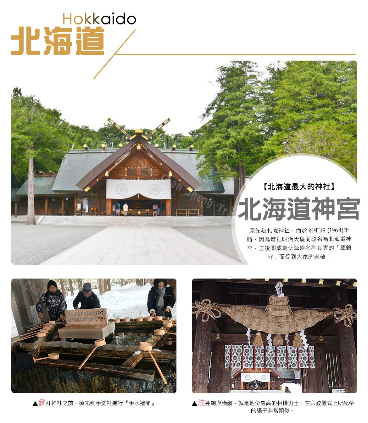 【北國總鎮守~北海道神宮】明治2年奉明治天皇的詔令而創建,為北海道守護神、開拓之神的祭祀之處,神宮原先為札幌神社,昭和39 年因增祀明治天皇而改名為北海道神宮,成為北海道的「總鎮守」(總守護神),古木參天、氣氛莊嚴肅穆,是百姓心靈寄託的所在。