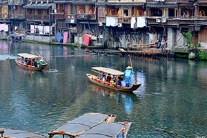 於古城中,您可以自由遊覽石板街、虹橋風雨樓、吊腳樓。鳳凰古城“民間工藝一條街”,街道兩旁的商店里全是湘西的民間特色商品。當地能夠買到苗族、土家族的手工藝品、服飾、蠟染等少數民族特色鮮明的旅遊紀念品。鳳凰古城排列在白雲下的古老的建築和城樓;它的吊腳樓與鳥翅下的炊煙…… 湘西鳳凰古城是一座國家歷史文化名城,它位於沱江之畔,群山環抱,曾被新西蘭著名作家路易艾黎稱讚為中國最美麗的小城。2001年12月17日,湘西鳳凰被國務院列為中國歷史文化名城。古城風景秀麗,歷史悠久,名勝古跡甚多。城內石板街,古代城樓,明清古院;城外沱江蜿蜒,河水清冽,槳聲舟影,山歌互答,好一派寧靜安詳的小城風光。