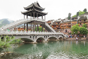 原名臥虹橋,又稱“風雨樓”,建於明洪武初年,位於是鳳凰的中心。在虹橋上看整個鳳凰城,沱江兩岸的如畫風景盡收眼底。虹橋分為上下兩層,一層主要是商舖和雜貨店,二層是民俗文化樓,裡面藏有從古到今所有關於虹橋風雨樓的書畫作品,也是個觀光和喝茶的好地方。