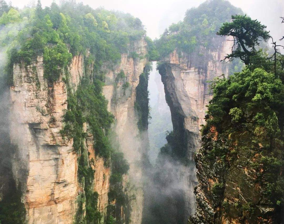 【天門山國家森林公園】森林公園因自然奇觀“天門洞”而得名,天門洞是巨大的穿山溶洞,經常霧氣瀰漫,走上到達天門洞的台階有種登上天庭的感覺。除此之外,還可以在纜車中俯瞰腳下99個彎的盤山公路和山中美景。膽大的還可以走一走貼壁懸空的玻璃棧道,體驗凌空行走的刺激。
