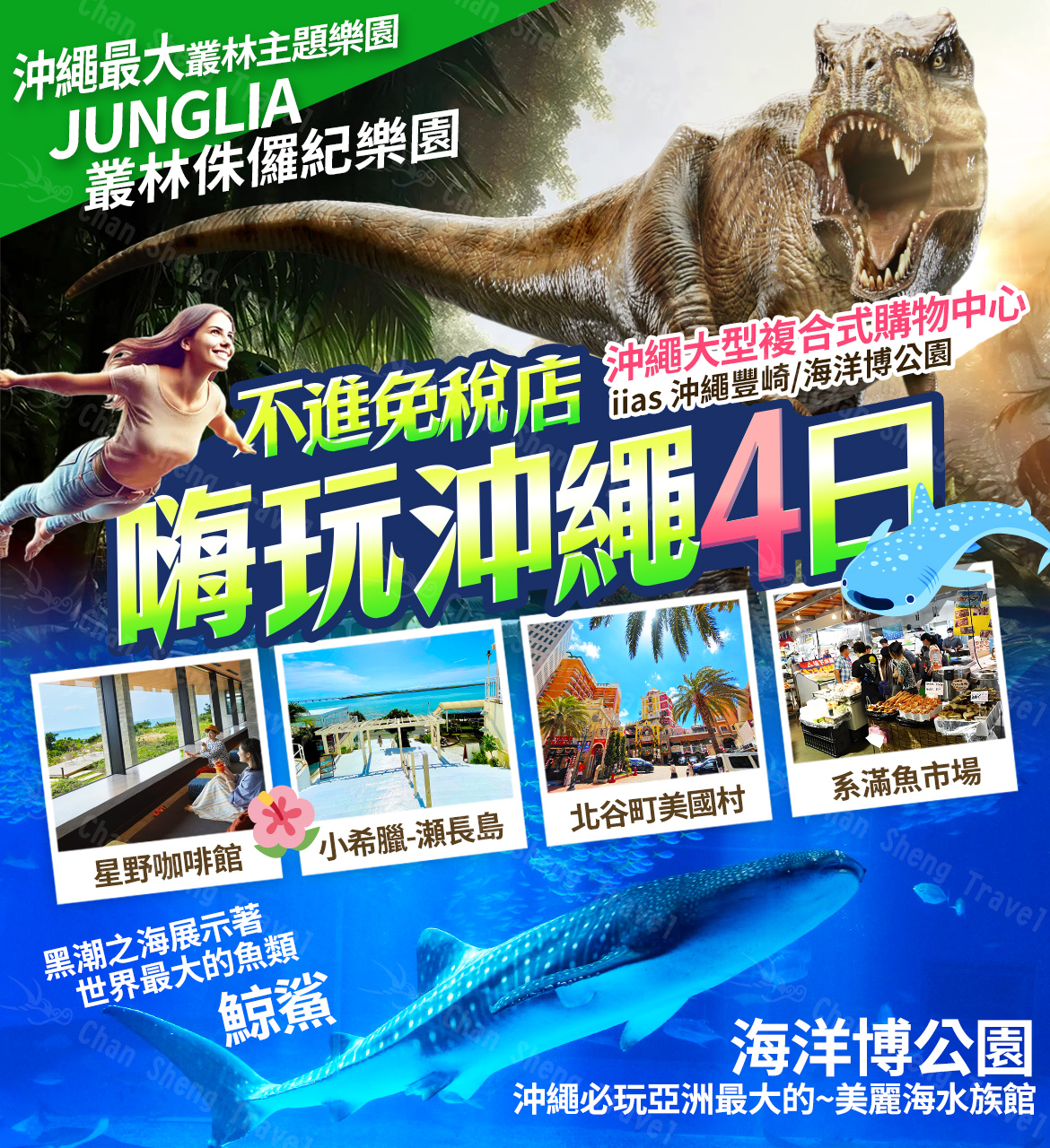 【嗨玩沖繩4日~(不進免稅店)】叢林侏儸紀樂園. 海洋博公園. IG爆紅沖繩小希臘~瀬長島.星野咖啡.北谷町美國村.沖繩